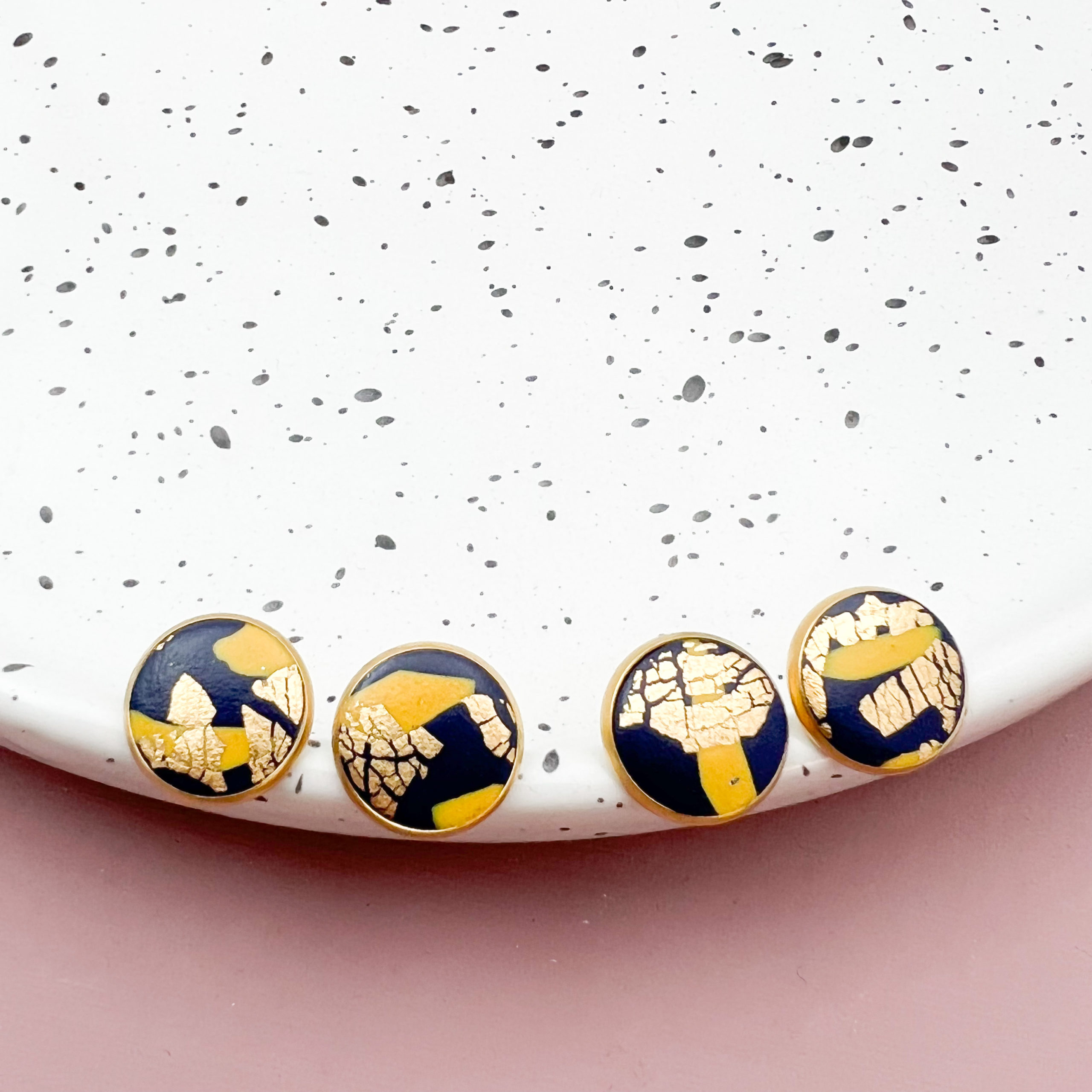 Ohrstecker petrol/ senfgelb mit Gold (Größe M)